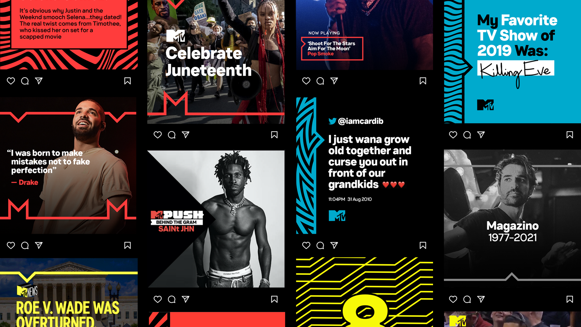 This is the first global brand redesign in MTV’s history. It provides a simple and flexible system that prioritizes user experience across all places and spaces. It leverages the legacy of the M and the logo in a new and visually exciting way. We created a custom font and tri-color palette that nods to our origin story and provides own-ability, expression and emotion. This allows us to showcase content – without getting in the way of the stories being told, strengthens brand equity and builds brand attribution. Based on our growth in social, linear and streaming - we know it worked.